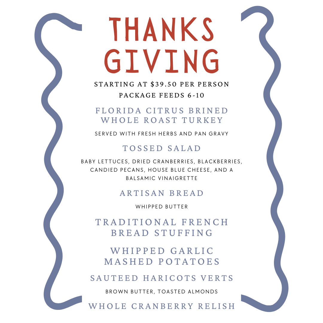 If you are interested in having this menu turned into a full-service catering with delivery on Thanksgiving Day, please inquire with our catering team: office@cateringjacksonville.com