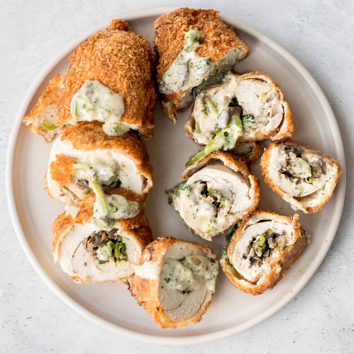 Includes: 5 panko crusted chicken roulades, each cut into 4 pieces, with 16 oz sherry cream sauce